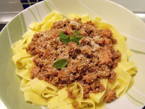 Colocar a carne por cima da massa cozida, polvilhar com os oregãos frescos aos pedaços.